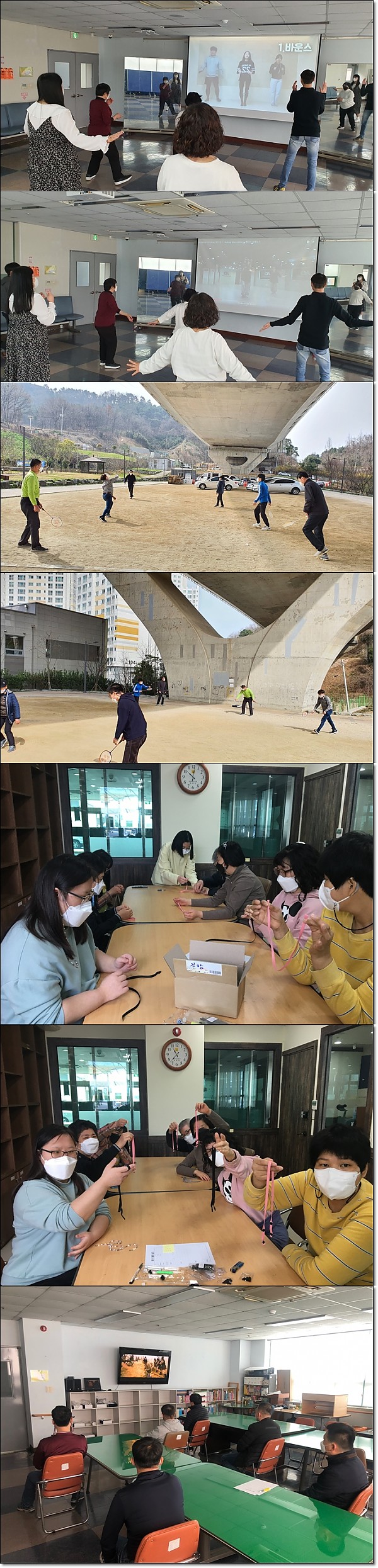 3월 이용인 동아리활동 페이지 정보 작성자 관리자 작성일22-04-12 16:07 조회4,593회 댓글0건 이전글 다음글 목록 본문 이번 동아리는 방송댄스, 십자수, 영화관람, 배드민턴을 진행하였습니다. 관심있는 동아리를 만들어 스스로 계획하고 평가하고 있습니다. 이전글 다음글 목록