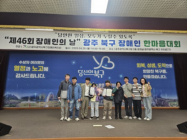 제46회 장애인의날 수상 페이지 정보 작성자 관리자 작성일26-04-20 17:23 조회15회 댓글0건 다음글 목록 본문 제46회 장애인의날을 맞이하여 센터 이용인 두분이 북구청장상, 북구의회의장상을 받으셨습니다. 많은 축하바랍니다. 다음글 목록