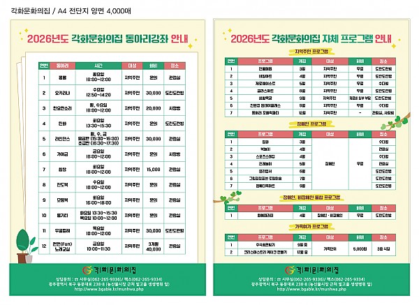 26년도 동아리활동 및 프로그램 안내 페이지 정보 작성자 정관용 작성일26-01-16 17:02 조회477회 댓글0건 이전글 다음글 목록 본문 26년도 동아리 전체 활동 안내 및 프로그램 안내합니다. 이전글 다음글 목록